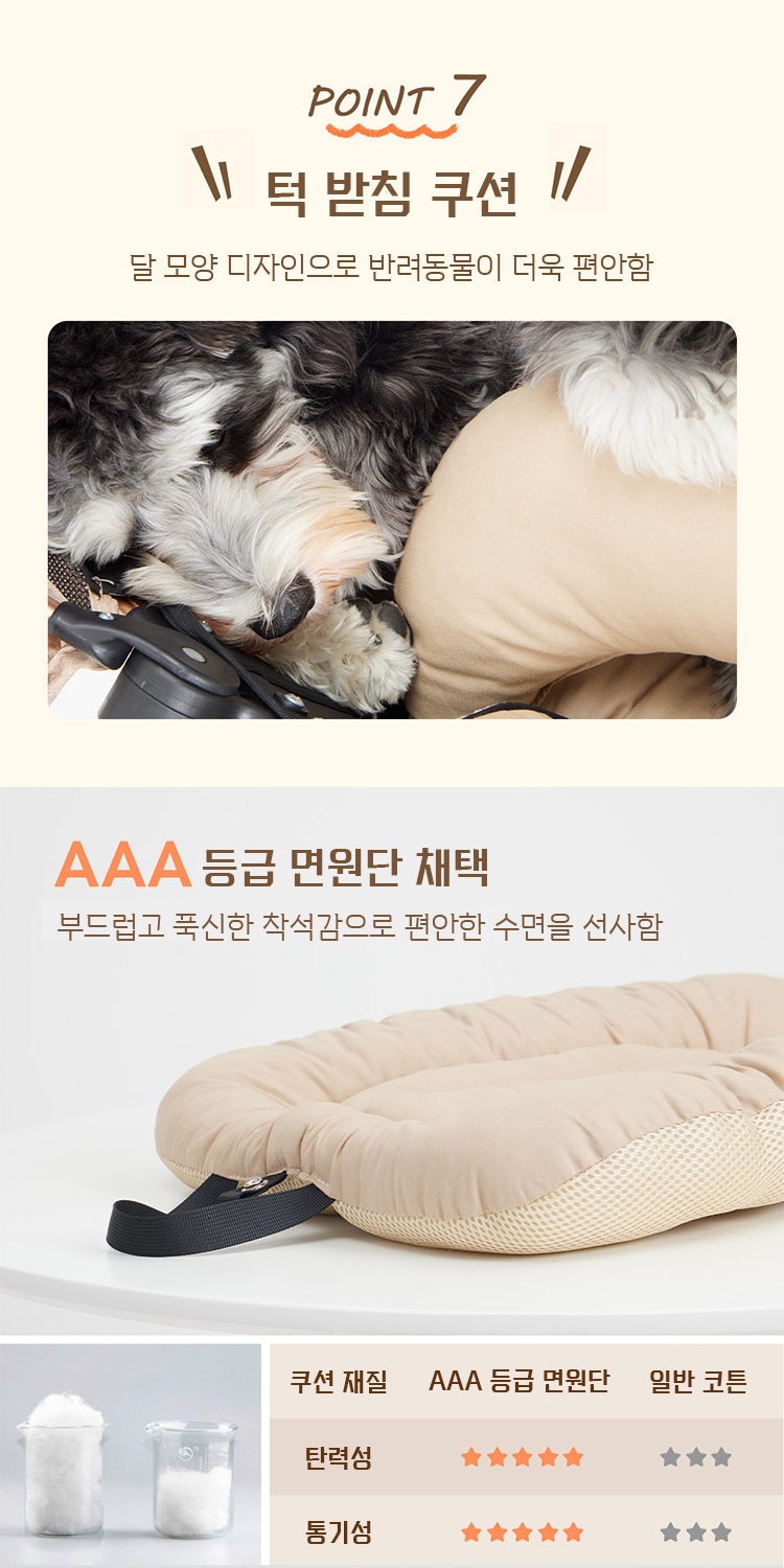 - 3종 세트 구성: 턱 받침 쿠션, 베개, 매트 포함