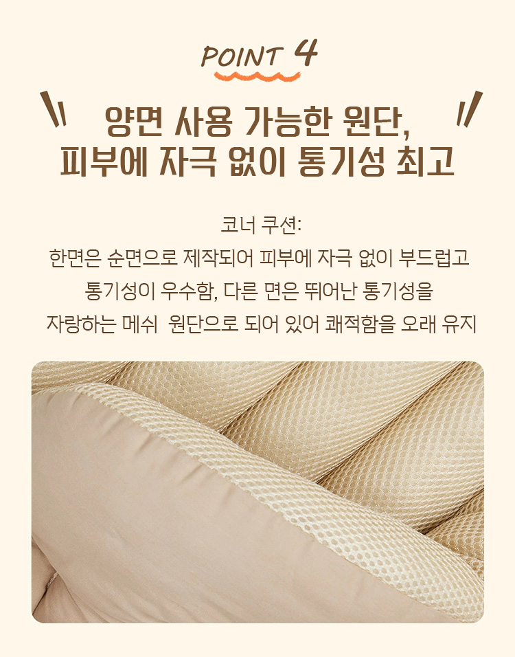 - 부드러운 소재: 아기 수준 퀼팅 코튼으로 민감한 피부에도 안전