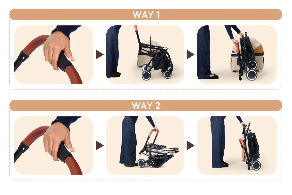 A. 유모차는 원터치로 간편하게 접을 수 있으며, 접은 후에는 부피가 작아 자동차 트렁크나 집 안 구석에 보관할 수 있습니다. 일부 모델은 접은 상태에서 캐리어처럼 끌고 다닐 수도 있어 휴대가 편리합니다.