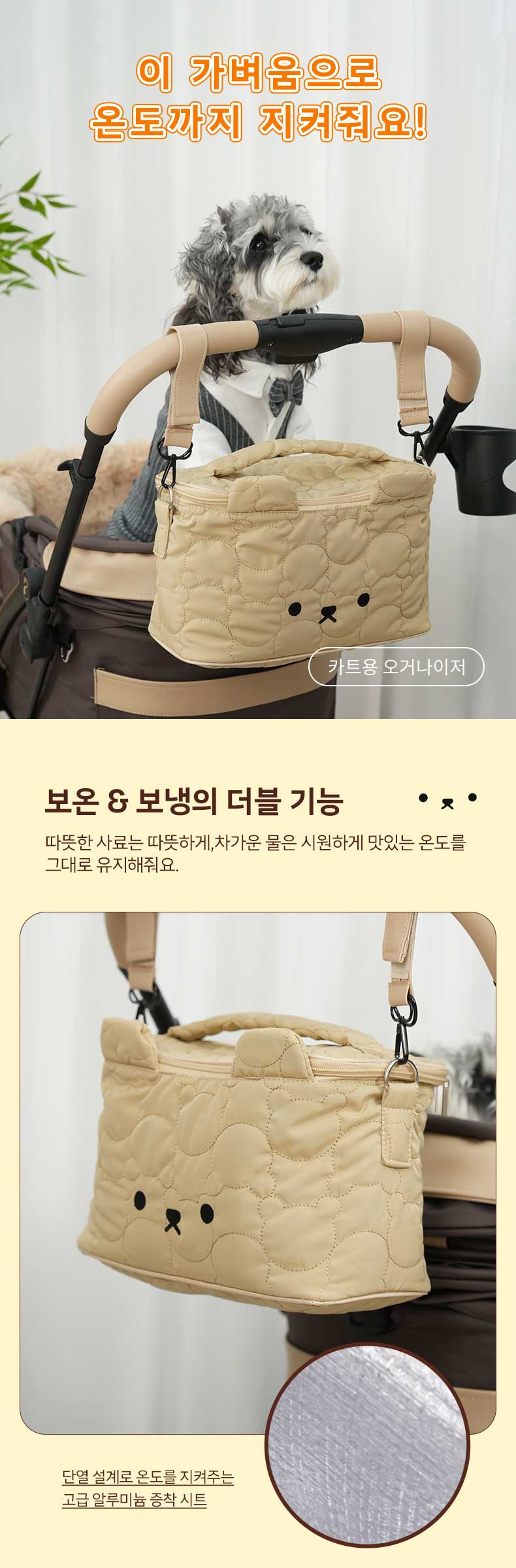 PETTENA 카트용 다기능 오거나이저 (보온보냉·단열·베어 패턴)