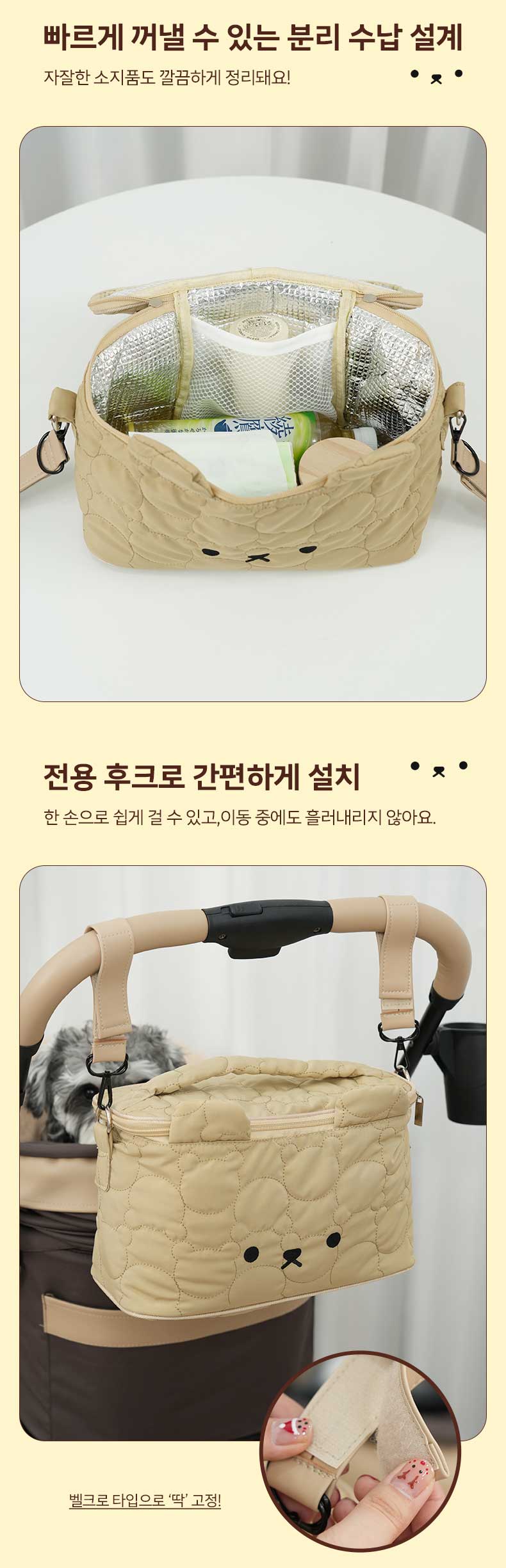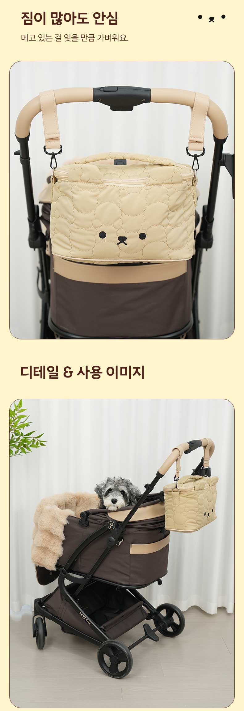 보기도 좋고 쓰기도 좋은, 초실력파 카트 오거나이저가 탄생했습니다. 귀여운 곰돌이 디자인에 숨겨진 놀라운 수납력! 이거 하나면 산책의 퀄리티가 180도 달라집니다.