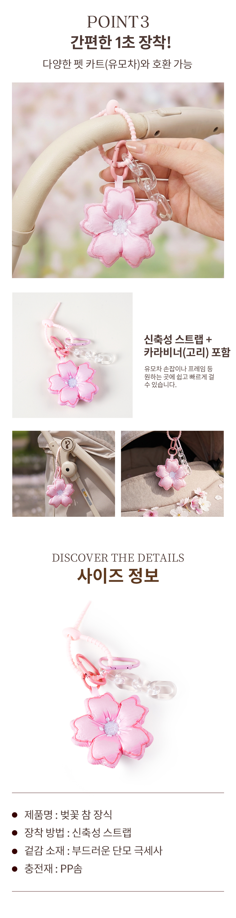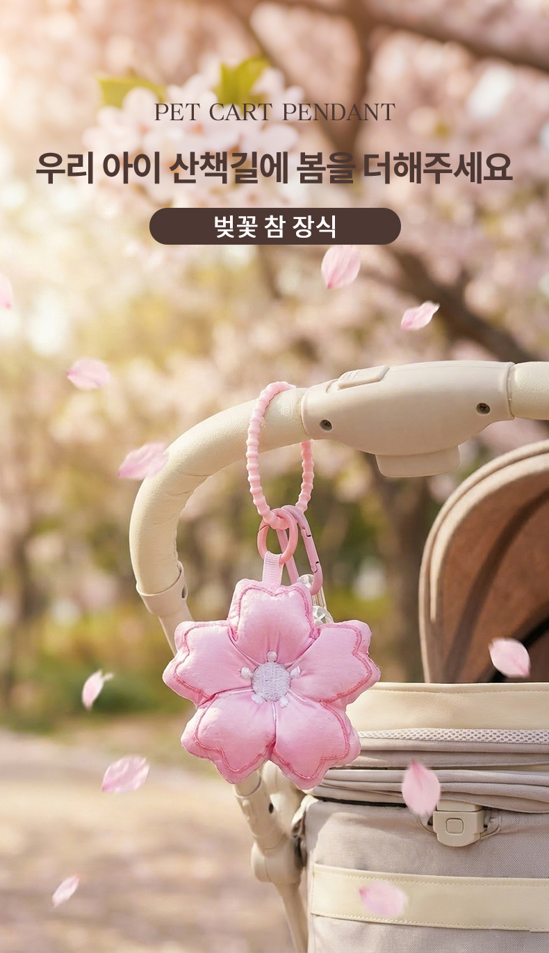 흩날리는 벚꽃 아래, 우리 아이와의 산책길이 더욱 특별해집니다. 평범했던 유모차도 단숨에 화사하게 변신시켜 줄 '펫테나 벚꽃 참 장식'을 만나보세요.